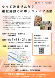 福祉施設でのボランティア活動に興味のある方は、ぜひご参加ください。