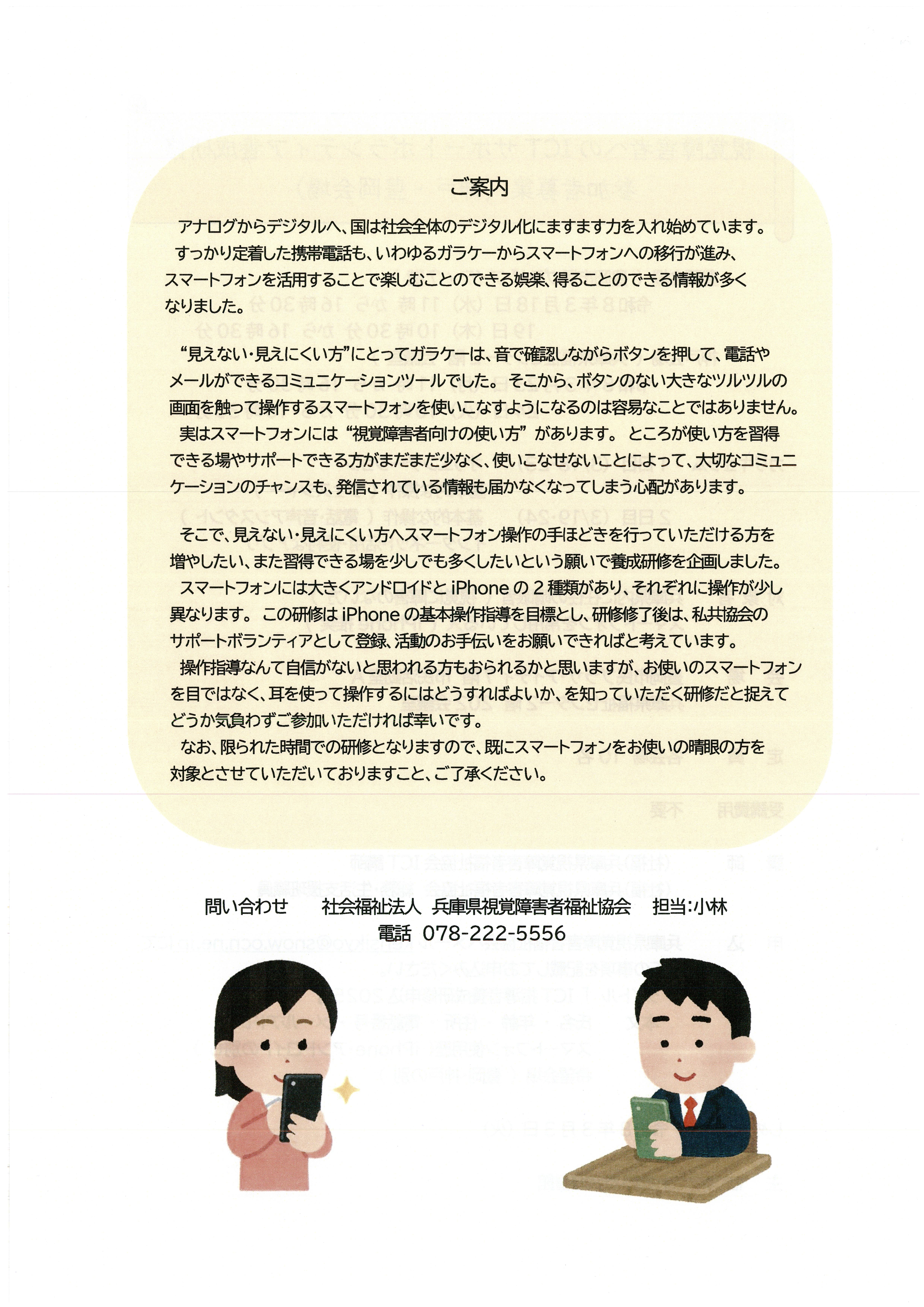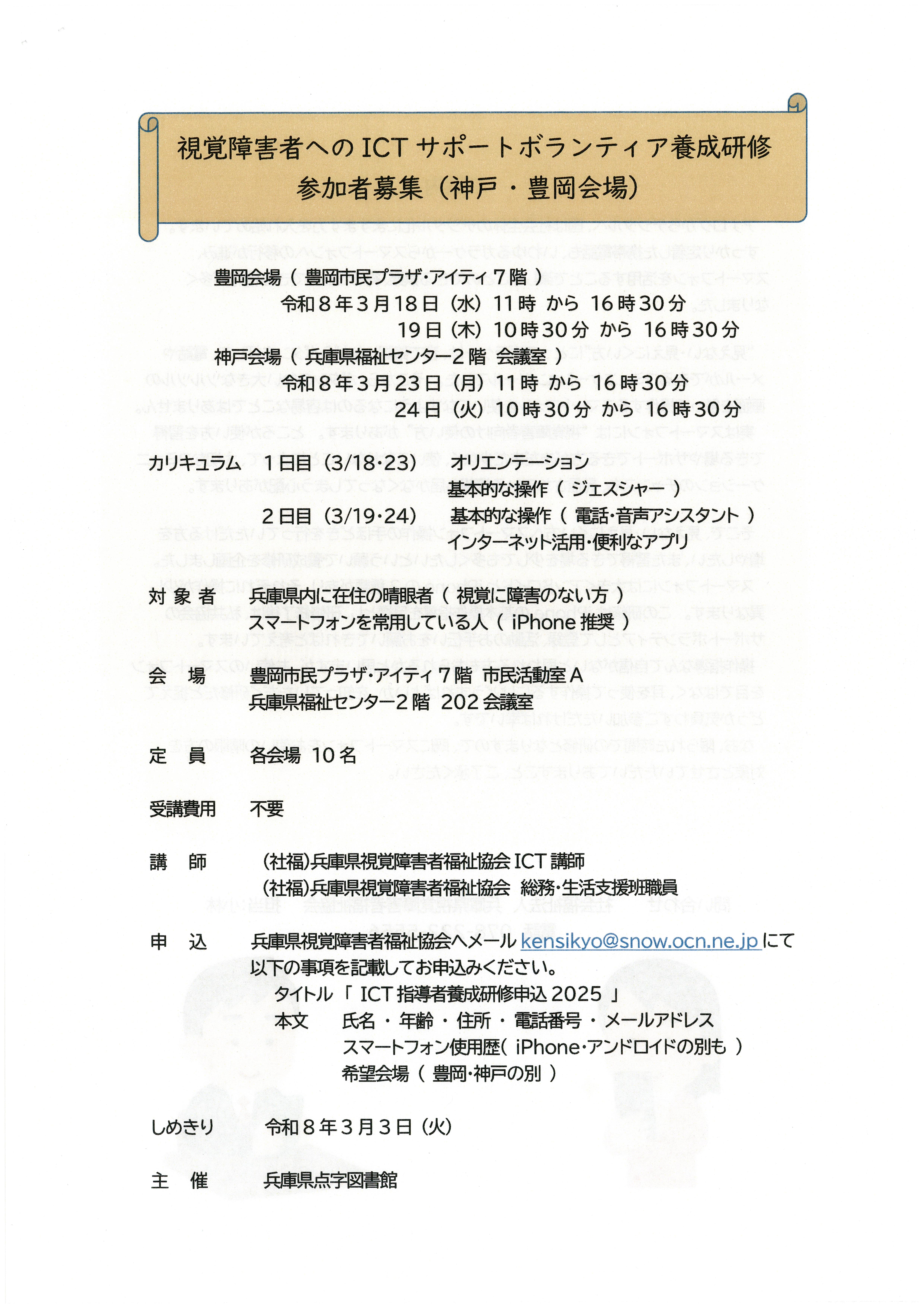 視覚障害者へのICTサポートボランティア養成研修(兵庫県視覚障害者福祉協会からのお知らせ)